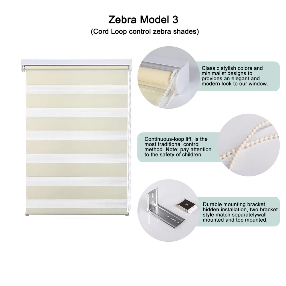 The classic Continuous Cord Loop control. Zebra blinds lifting method just is up or down, so you can control the blinds up or down by pulling the continuous Cord Loop. Product information of Wintomblinds Continuous Cord Loop zebra blinds are as follows: