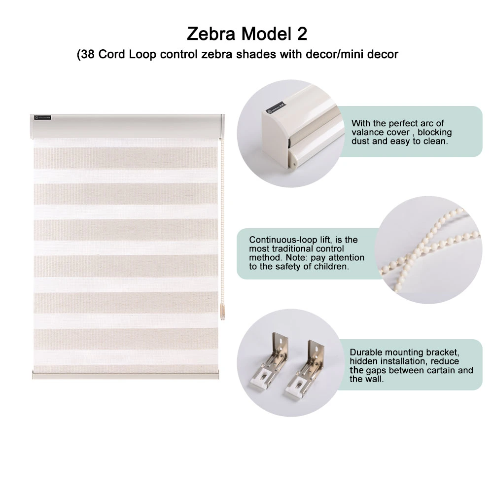 Zebra shades model 2  (38 Cord Loop control zebra shades with decor/mini decor cover)