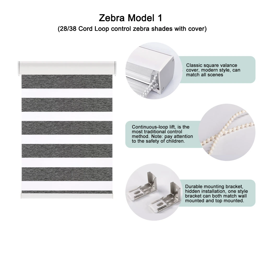 Zebra Model 1   (28/38 Cord Loop control zebra shades with cover)
